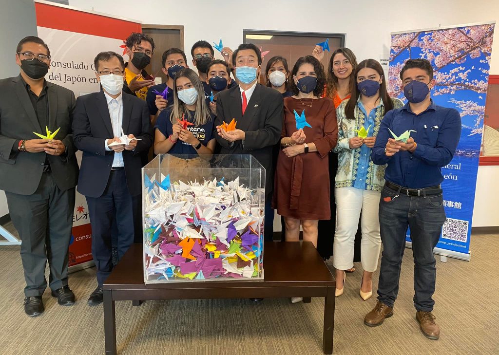 Para conmemorar el Día Mundial de la Paz y para reforzar los enlaces internacionales, los alumnos y maestros de la Universidad de Guanajuato hicieron una entrega simbólica de aproximadamente mil grullas de origami, al Consulado General de Japón en León.